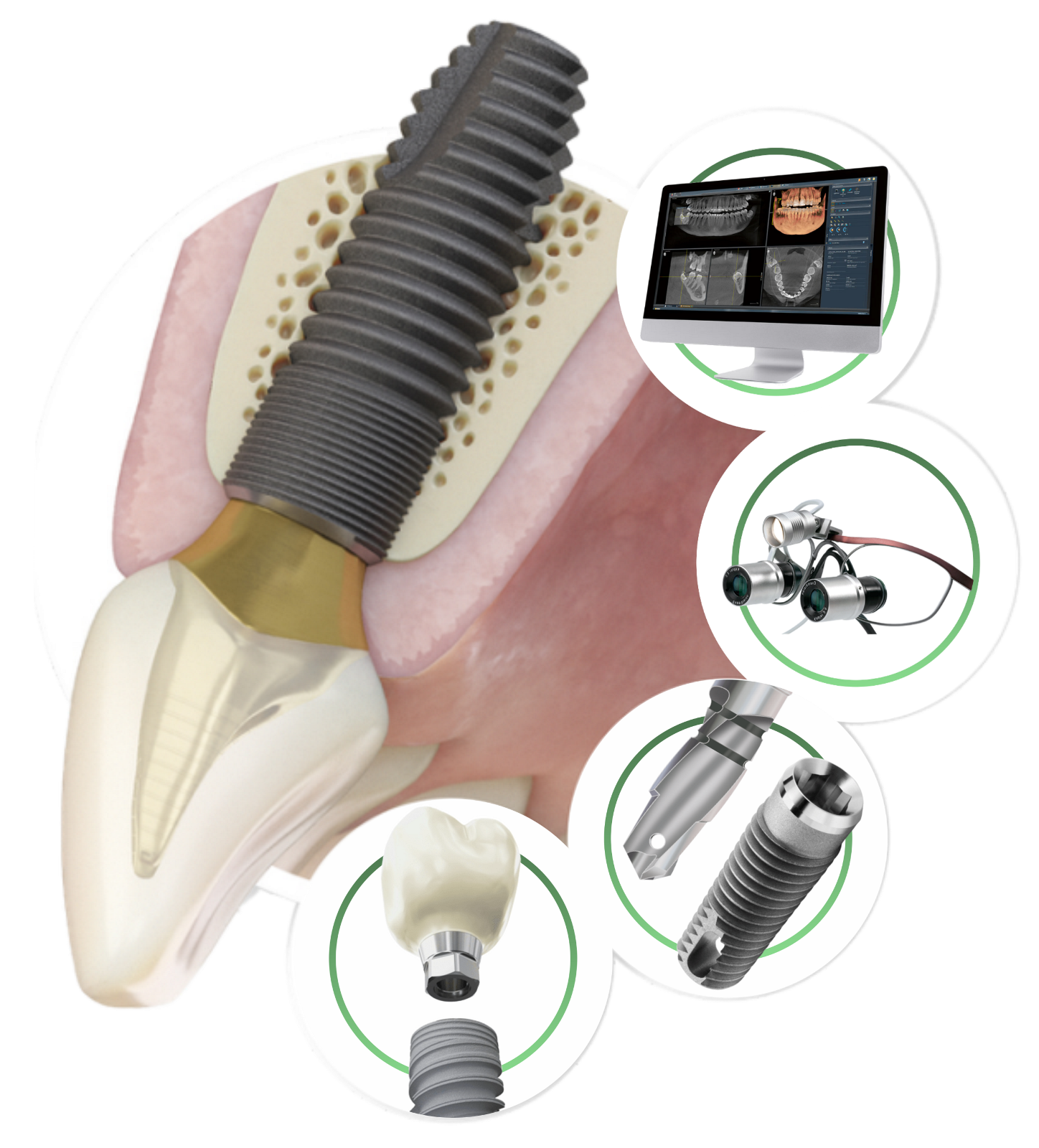 Имплантат с гарантией, формирователь десны. (кроме костной ткани если требуется)